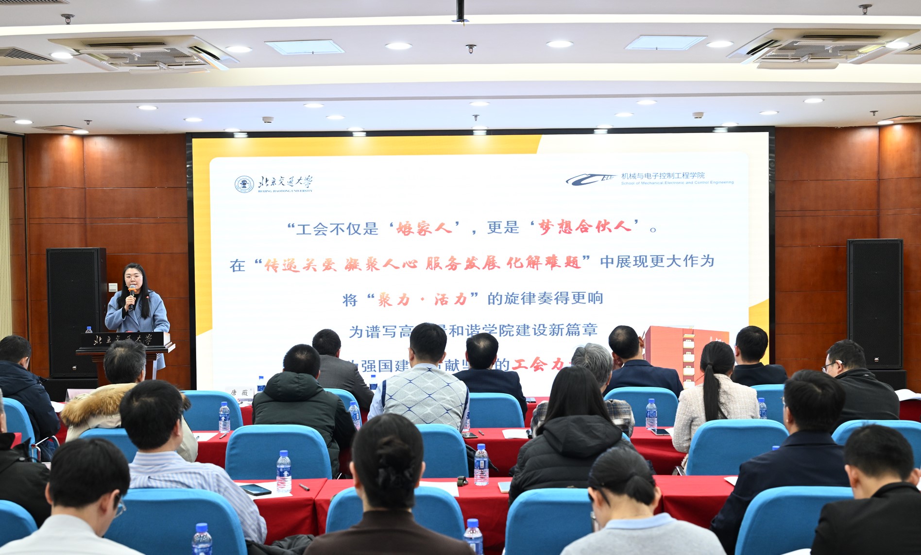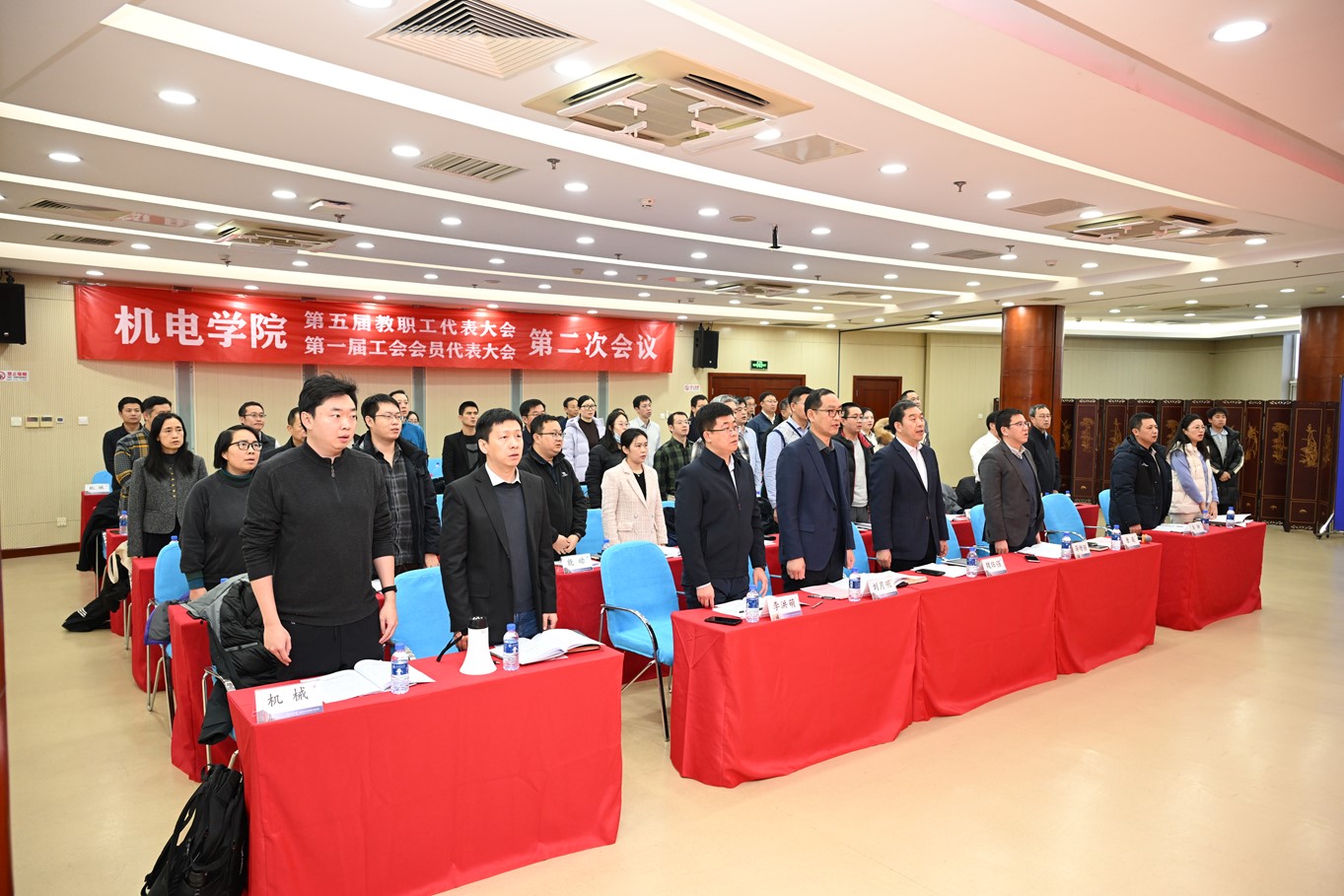 12月30日下午,h图书馆 第五届教职工代表大会第一届工会会员代表大会第二次会议在机械工程楼一层多功能厅隆重召开。大会由h图书馆 党委副书记、工会主席唐薇主持。学院教代会代表、工代会代表共50余人出席会议。会前,大会召开预备会议,审议并通过了代表变动情况说明及本次会议议题,为大会顺利召开奠定坚实基础。