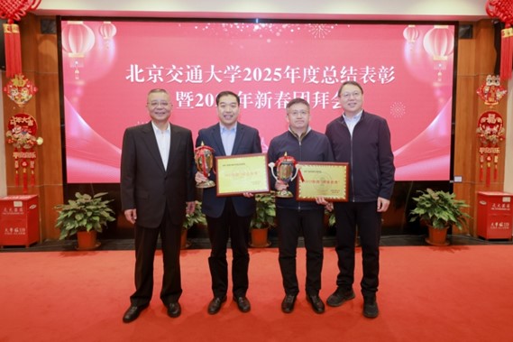2026年1月20日下午,学校举行2025年度总结表彰暨2026年新春团拜会。校党委书记陈子季、校长余祖俊为获奖单位颁发奖杯和奖牌,h图书馆 获“思源杯”,获首届“伯乐奖”。