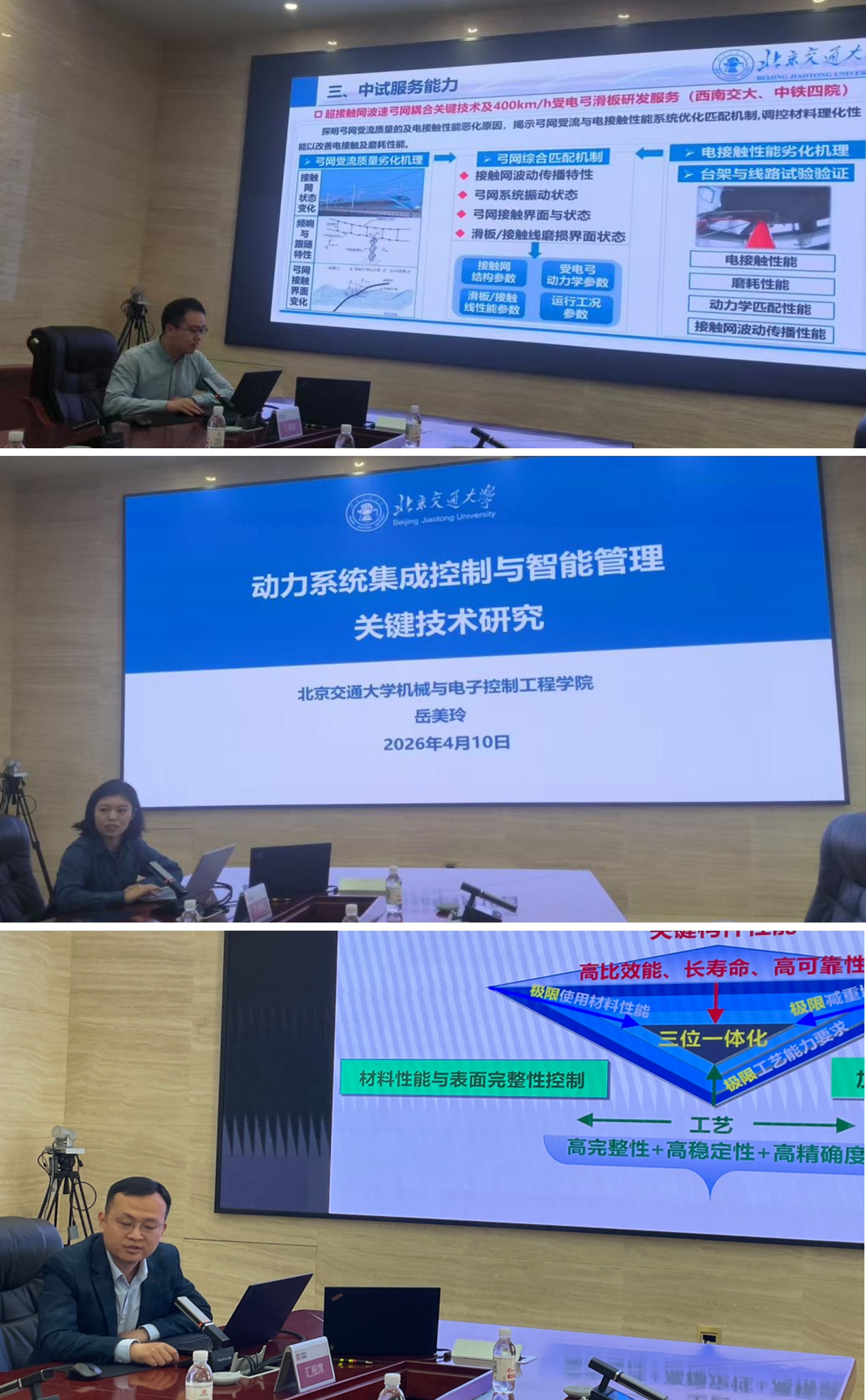王文静代表学院对中车四方股份公司多年来在人才培养、科学研究等方面给予的支持和帮助表示感谢。她希望“十五五”期间,进一步深化产教融合、科教融汇,推动人才培养与企业需求精准对接,实现更多科研成果向企业应用高效转化,以共建创新研究院为契机,构建长效的产学研协同机制。李洪萌介绍了h图书馆概况 和北交雄安创新研究院规划,教师代表分享了在智能制造、结构可靠性设计、先进润滑、新能源等方面的科研成果。
